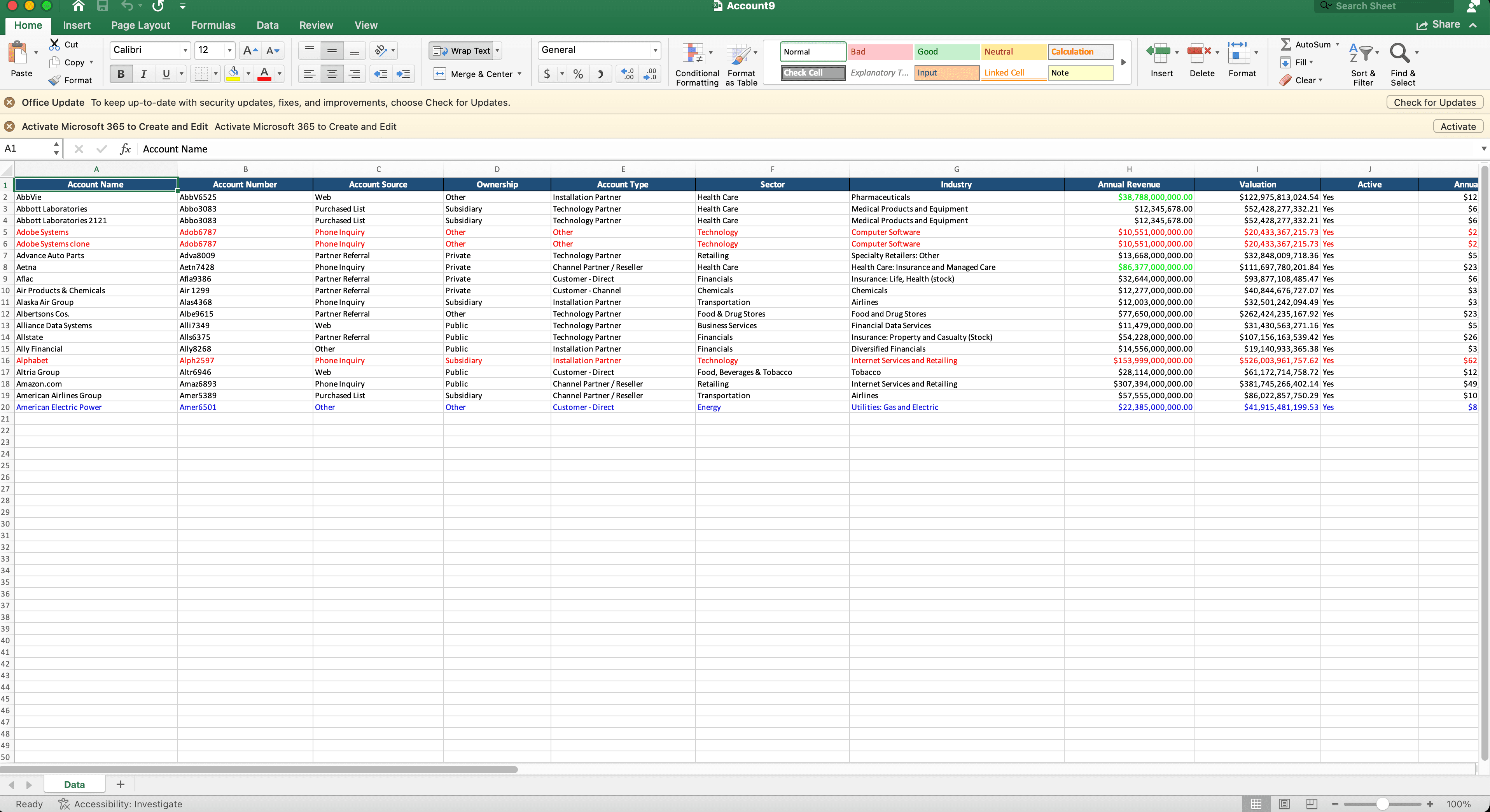 Account Type is either "Customer - Direct" or "Customer - Channel"