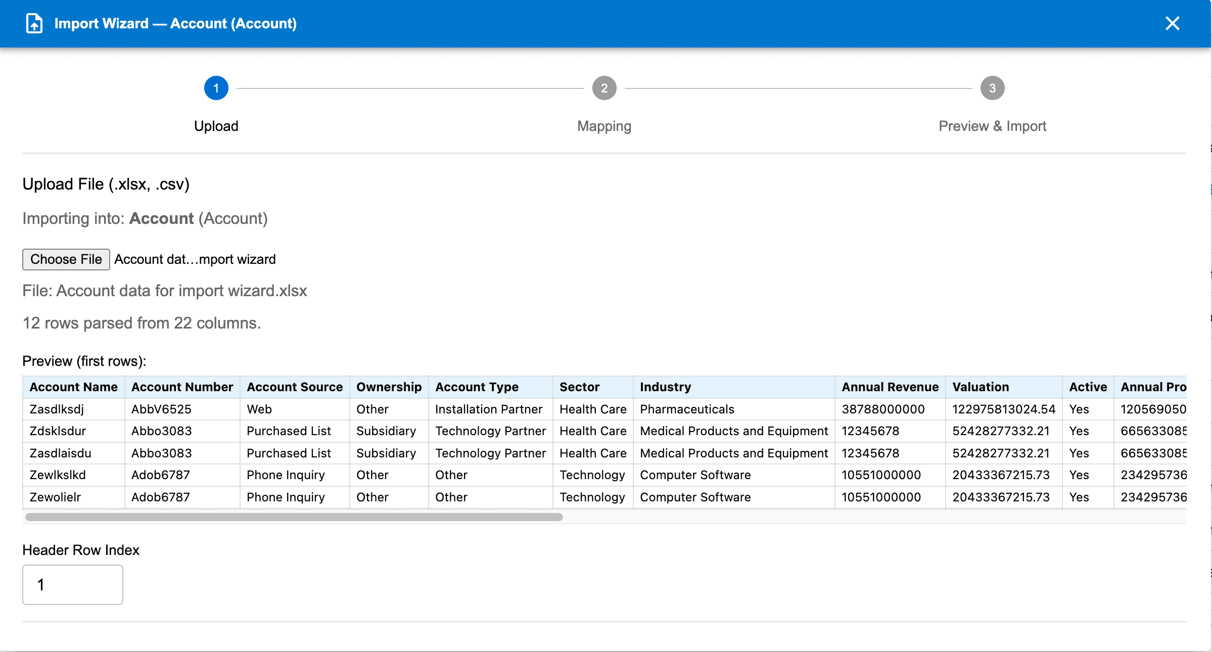 We wanted to provide our users with an easy to use application that any business user can use without training. Select the Import menu item from the grid More Actions menu and select the file to import. You can import Excel files and CSV files. The import wizard supports inserting new records and upsetting existing records at the same time.